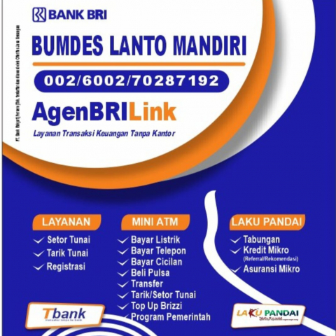 Unit usaha Bumdes Lanto Mandiri melayani Tarik Tunai. Setor Tunai, bayar listrik, bayar telpon, bayar wifi, bayar cicilan dll... Silahkan Hubungin Bumdes mandiri di Nomor Wa